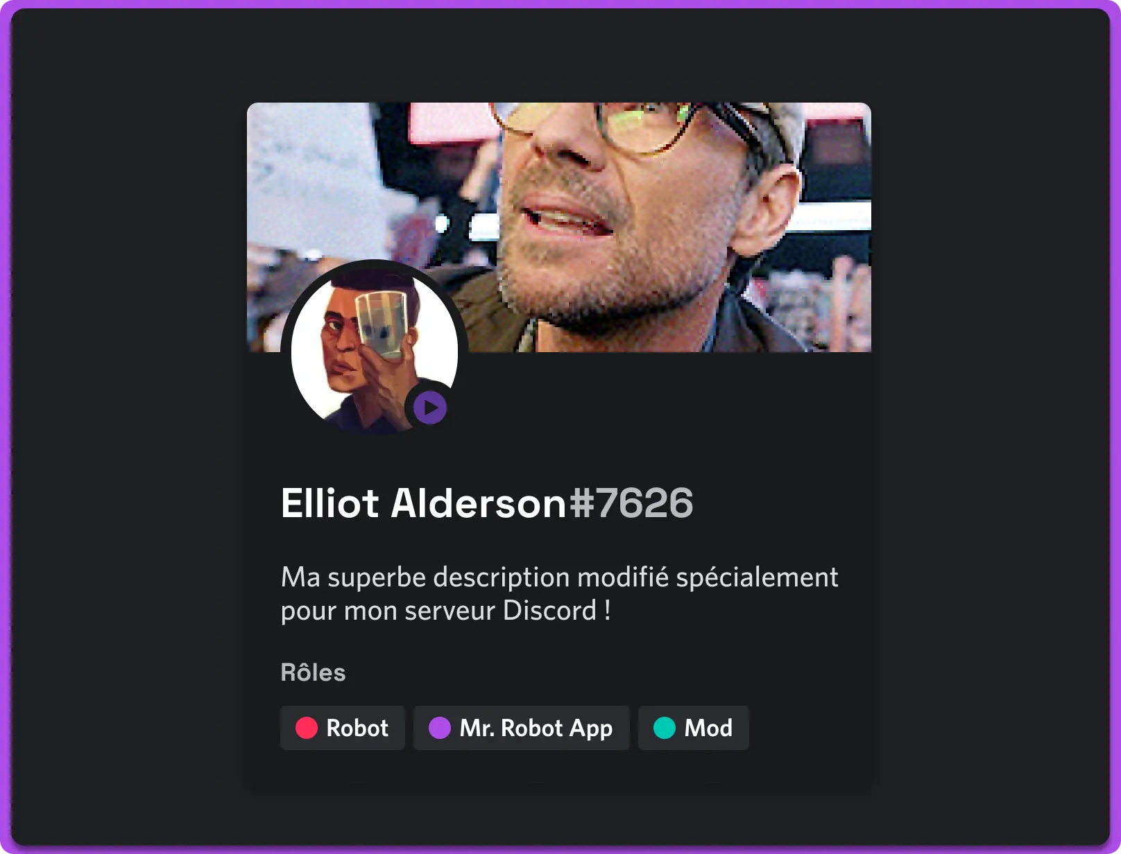 Vous avez la possibilité de modifier le nom, l'avatar, la bannière et la description du robot sur votre serveur Discord.